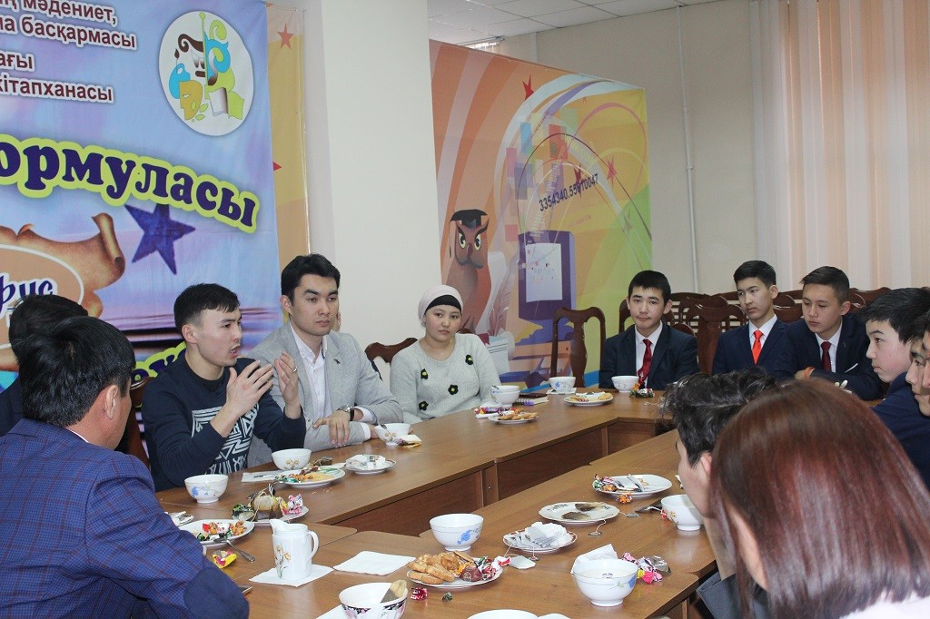 Заседание клуба было проведено с участием молодежи интеллектуального центра «БОТА» областной юношеской библиотеки имени Ж.Бектурова и учащихся лицея-интерната №1 «Образование-инновация». В ходе мероприятия активный участник центра «БОТА» Н.Ахметов прочитал отрывок из произведения О.Бөкея «Атаукере».