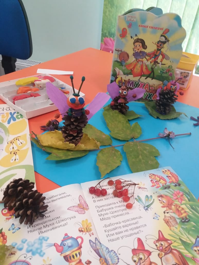 Ну, кто сказал, что муха – это назойливое и непримечательное насекомое? После прочтения сказки, дети, участники творческой студии «Шуақ» сделали красивую муху — цокотуху из природных материалов.