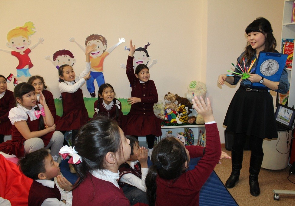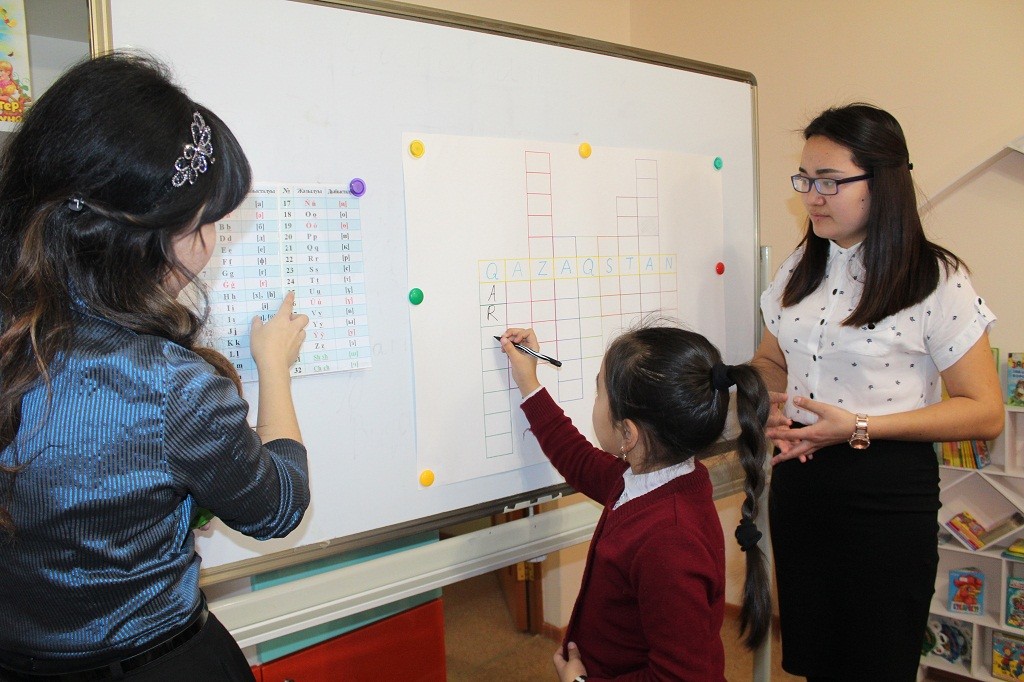 В завершении детям было предложено разгадать тематический кроссворд, вписывая ответы основываясь на новый вариант казахского языка на латинице.