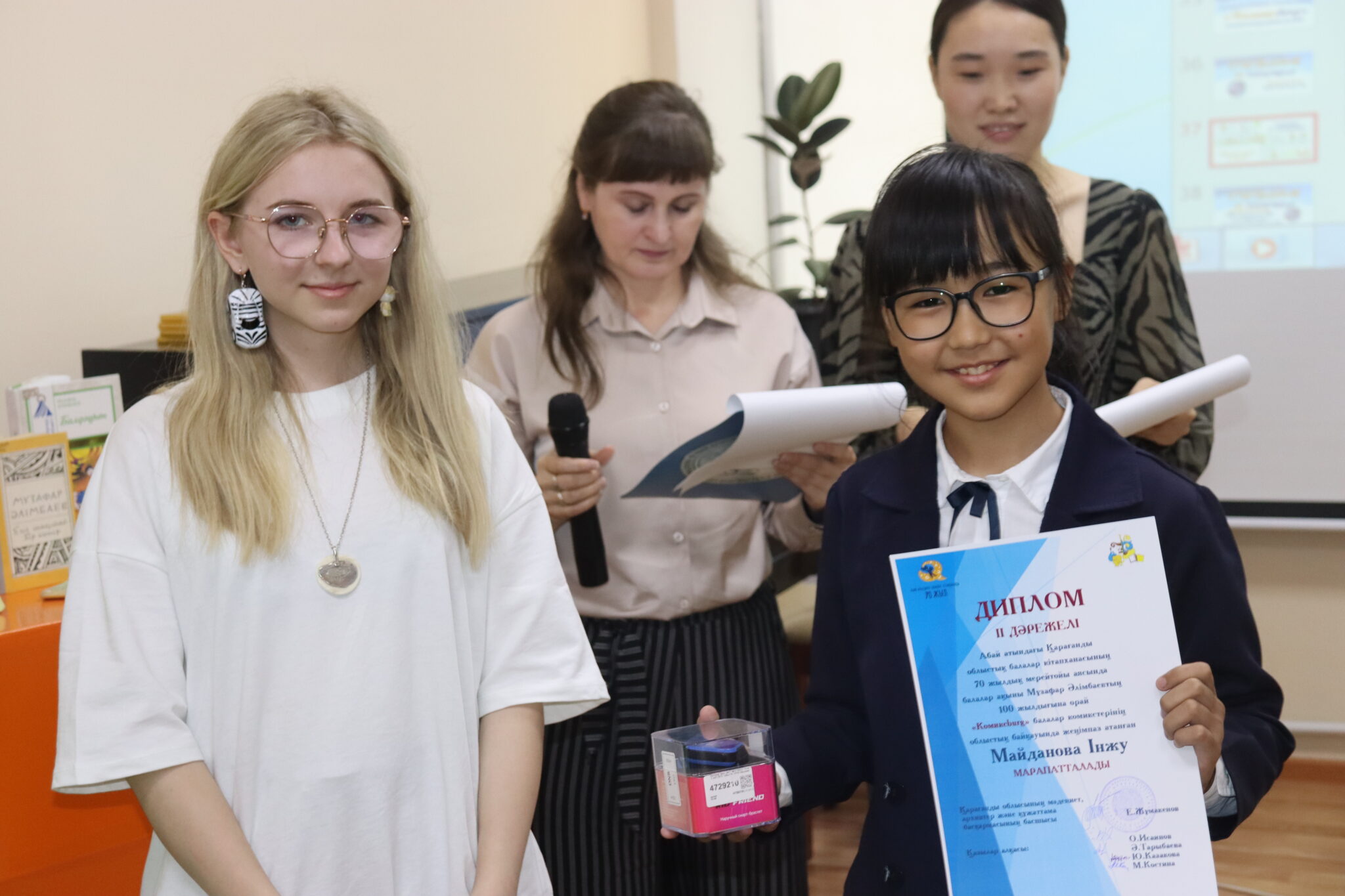 III место: Еркеназ Жанабай (с.Касыма Аманжолова, Каркаралинский район) и Арыстанбековой Ақерке (п.Топар, Абайского района) – блютуз колонка).