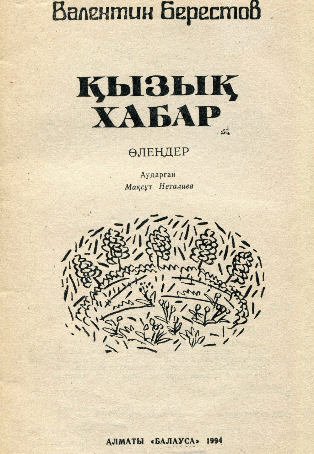 Берестов, Валентин. Қызық хабар [Мәтін] : өлеңдер / В. Д. Берестов; ауд. М. Неталиев. — Алматы : Балауса, 1994. — 64 б.