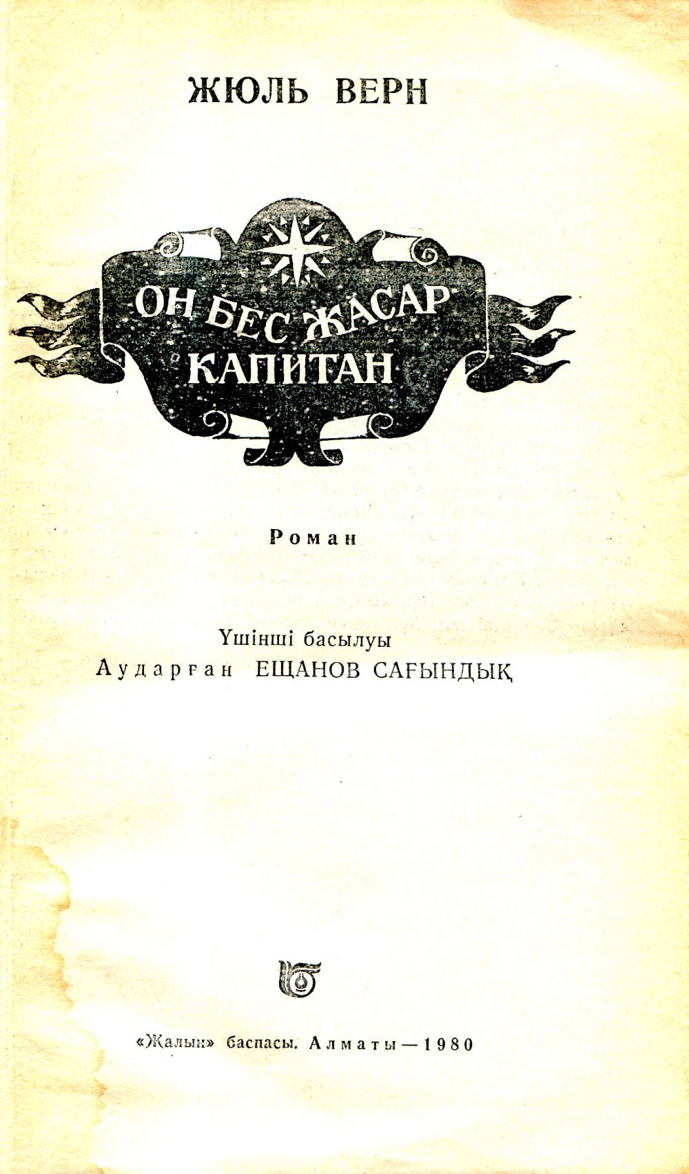 Верн, Жюль. Он бес жасар капитан : роман / Ж. Верн ; ауд. С. Ещанов. — 3-е изд. — Алматы : Жалын, 1980. — 328 б. : сур. — 30.00 тг.