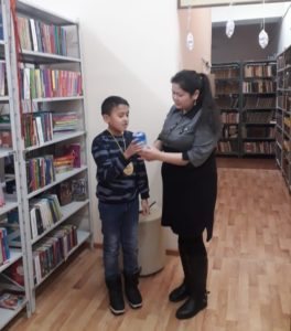 Первый рабочий день нового 2019 года. 03 января первым читателям библиотеки были вручены памятные медали и небольшие подарки.
