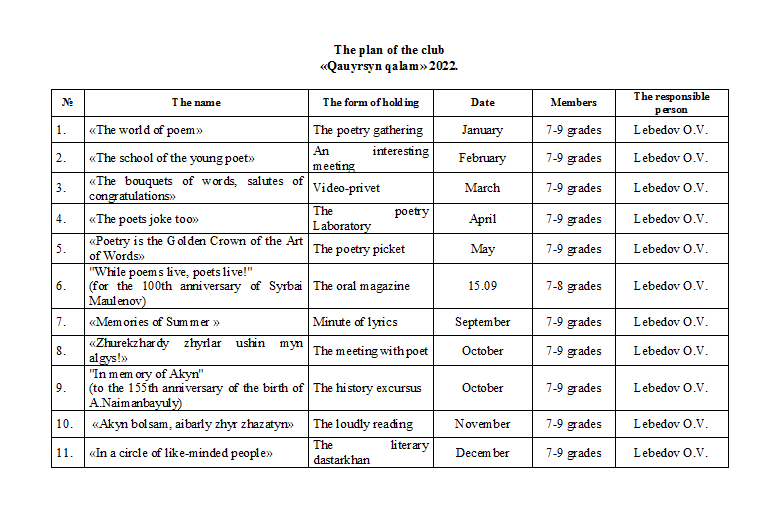 План на 2022 Кауырсын калам