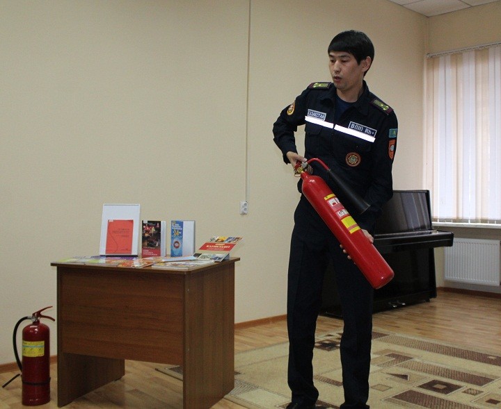 В связи с этим 31 октября для сотрудников библиотеки инженером Управления по чрезвычайным ситуациям города Караганды Ускеновым Д. в библиотеке была проведена лекция «Пожарная техника и требования к первичному тушению пожаров».