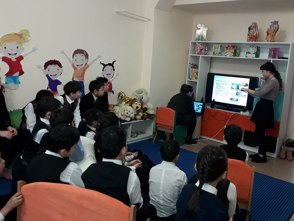 В завершении был показан документальный фильм «Караганда – страницы истории» созданный 5-м телеканалом нашего города и презентована арт — понорама «Туған өлкем – қандай көркем», где вниманию юных посетителей библиотеки представлены книги и фотоальбомы по истории Караганды и Карагандинской области