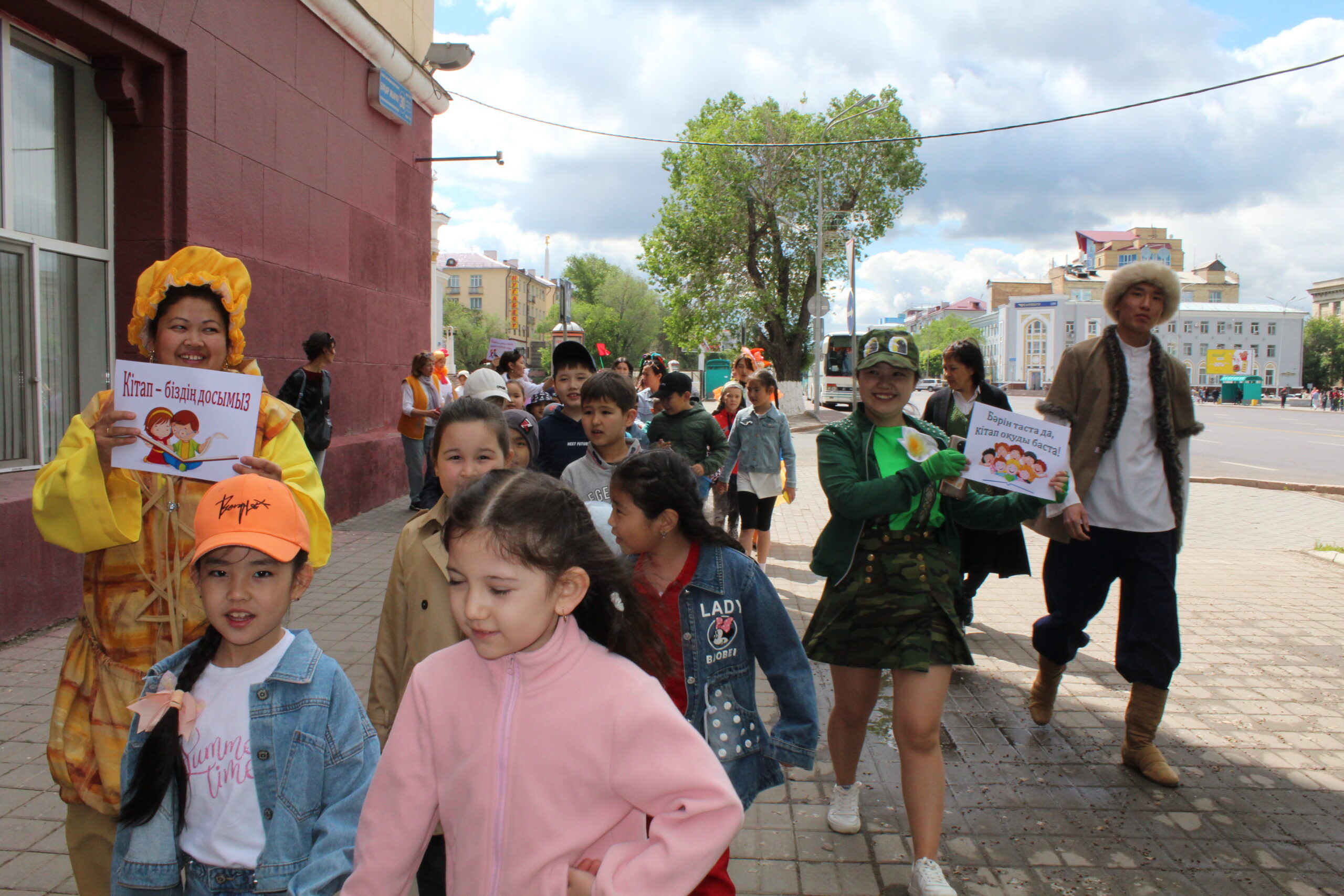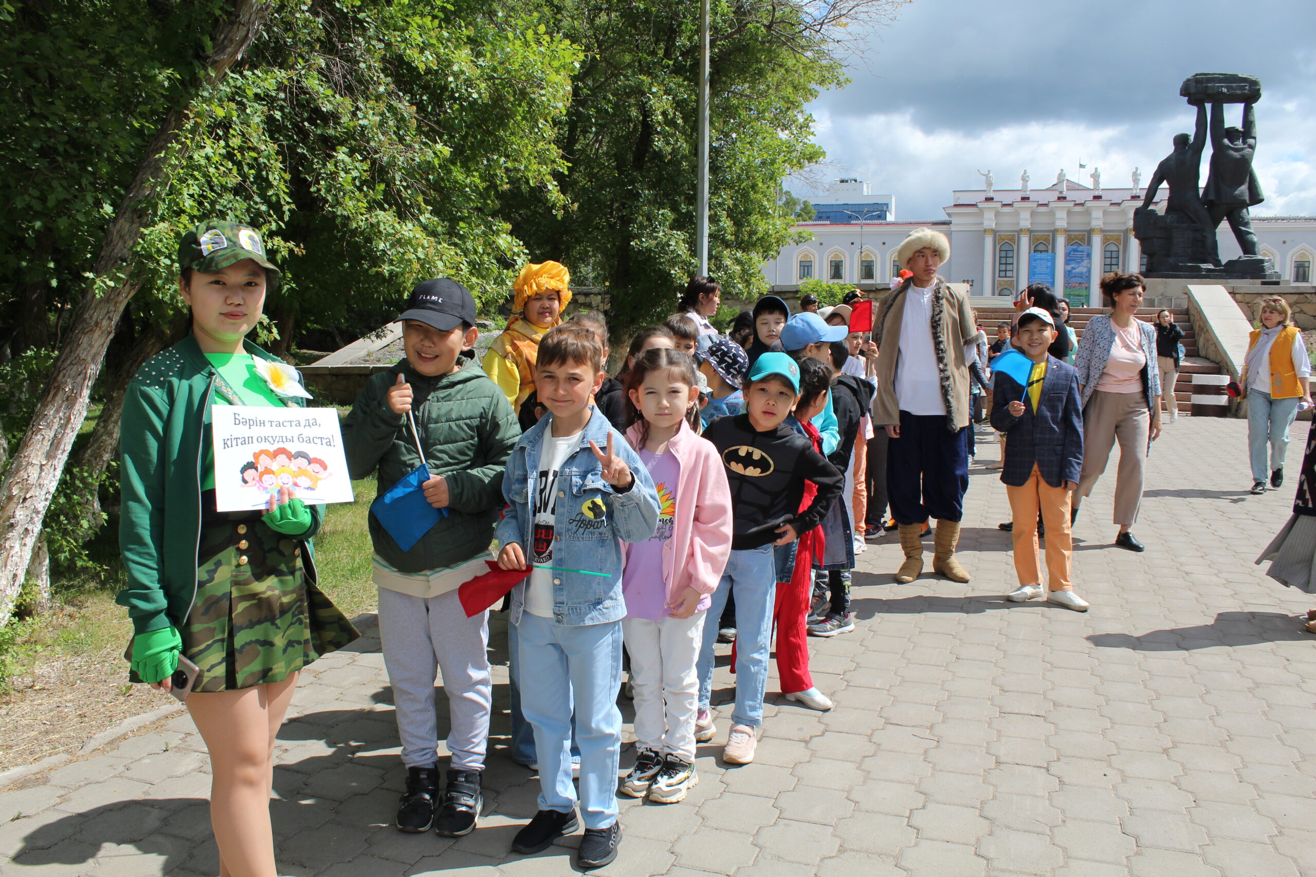 Для юных пользователей библиотеки и жителей города Караганды состоялось необычное и яркое мероприятие — «Шествие литературных героев»