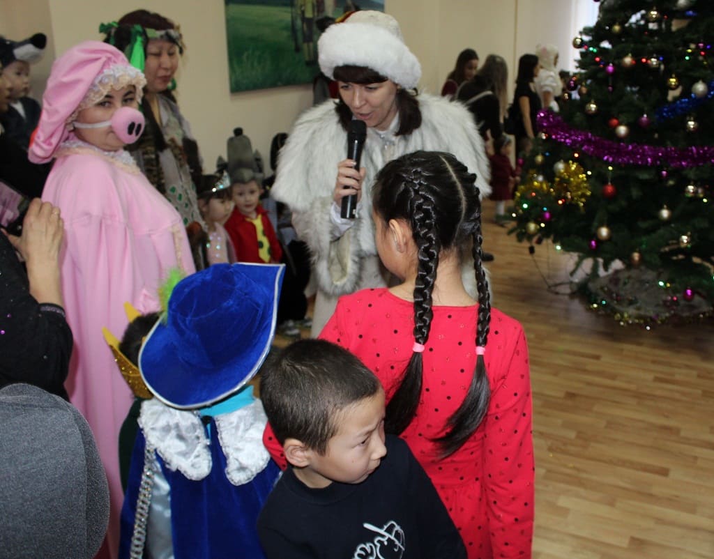 Все присутствующие дарили друг другу хорошее настроение с помощью сказочных персонажей – Кикиморы, Белой крысы, свинки Пеппы, Лисицы и Сороки, которые вместе с Зимушкой-зимой и Снеговиком играли в новогодние забавы, разгадывали загадки, водили хороводы.