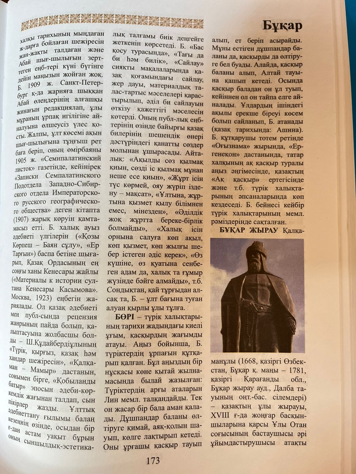 Бухар жырау Калкаманулы — одна из ярких личностей в казахской истории, который выступал убежденным сторонником справедливости, и в поэтизированной форме проповедовал идеи добра, истины, воспевал красоту и могущество природы. Он был одним из влиятельных биев и поэтов. Бухар жырау был весьма образованным для своего времени человеком и писал на арабском языке. Из его поэтического наследия до нас дошло около 1200 строк.