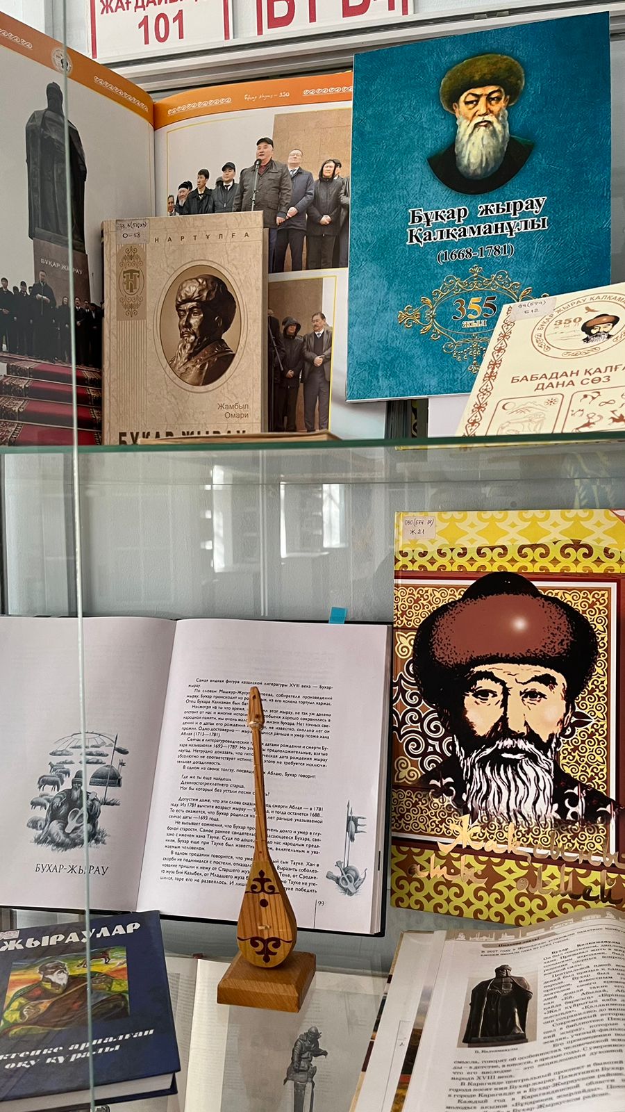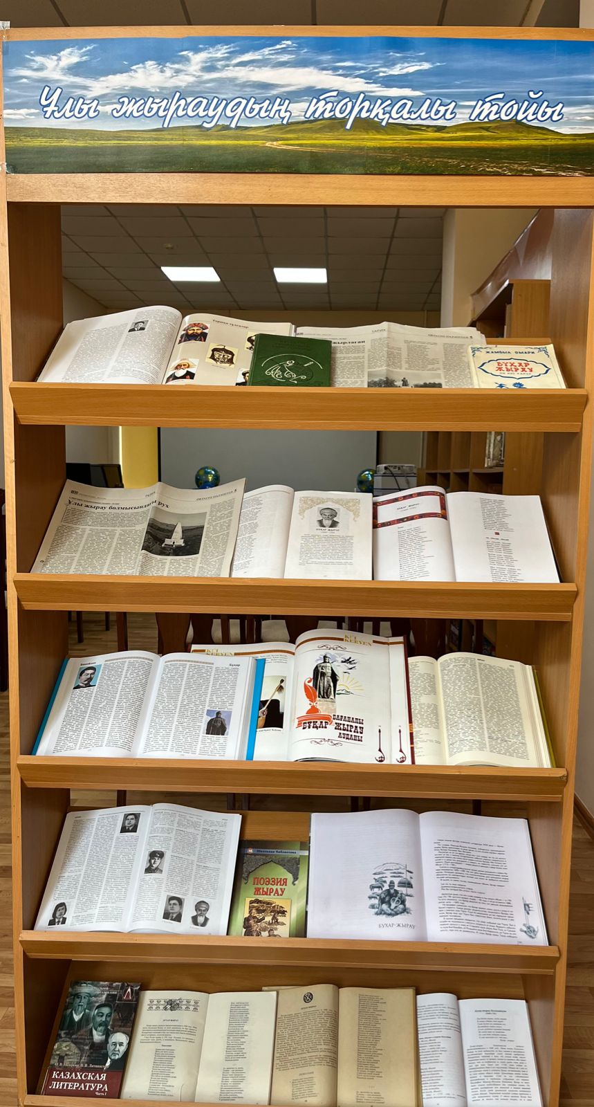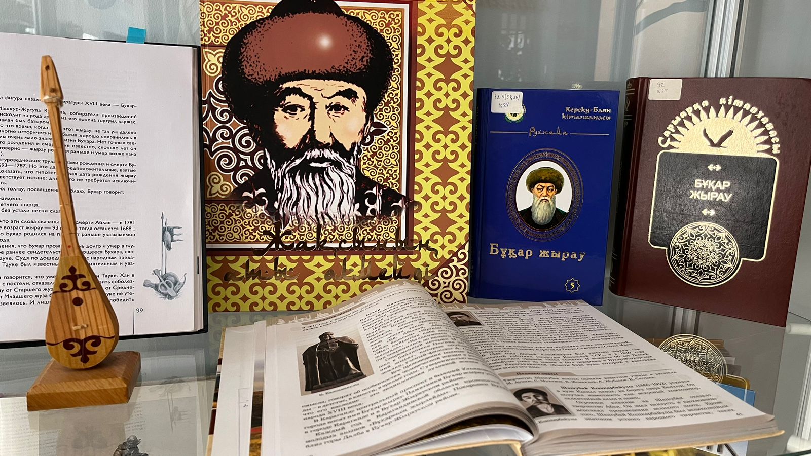 Больше о казахском поэте-сказителе читатели библиотеки могут узнать, познакомившись с поэтическим наследием через выставку-персоналию «Ұлы жыраудың торқалы тойы».